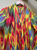 With a delectable palette of festive colours, the print of the dress is inspired by ikats of Central Asia. The dress is cut for comfort & features a beautiful v-neckline, long sleeves & deep pockets that makes for a great fuss-free option for special outings, celebratory or otherwise. Wears same as Gul Dress.